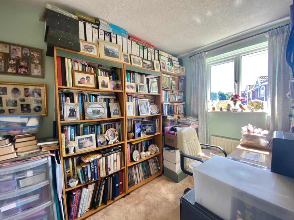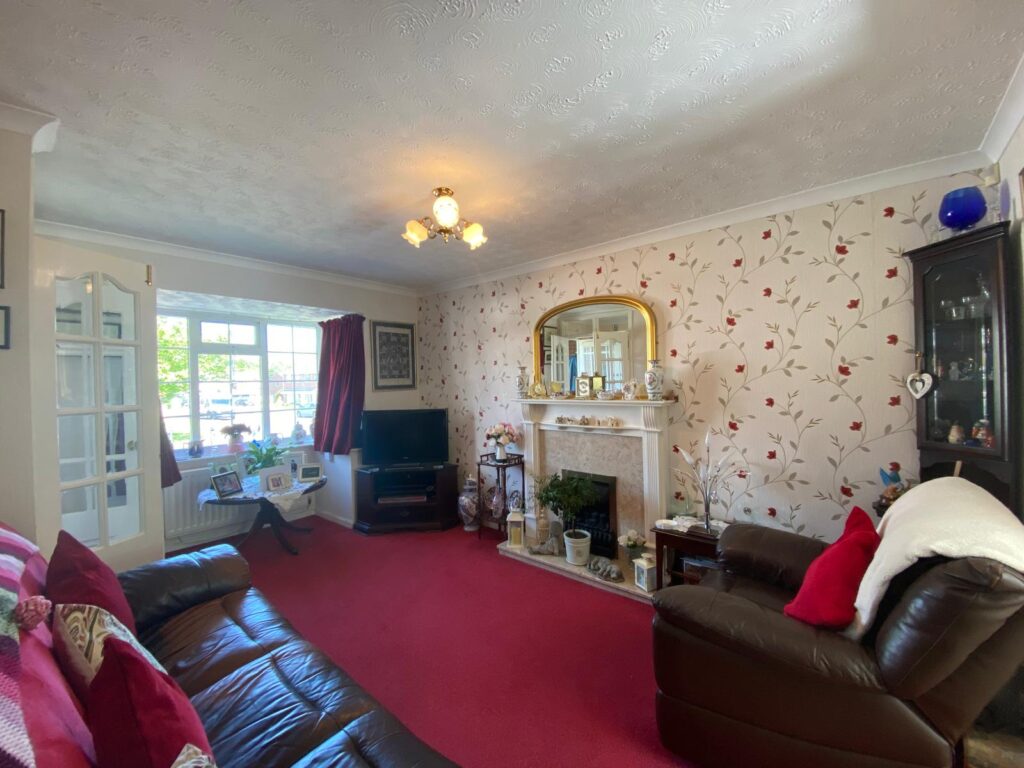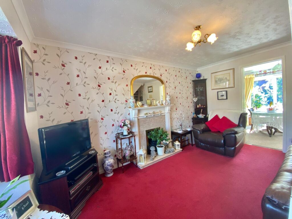A spacious family room with UPVC double glazed window to the front, feature fireplace, ceiling coving, access to the dining room, radiator, power and ceiling light points.