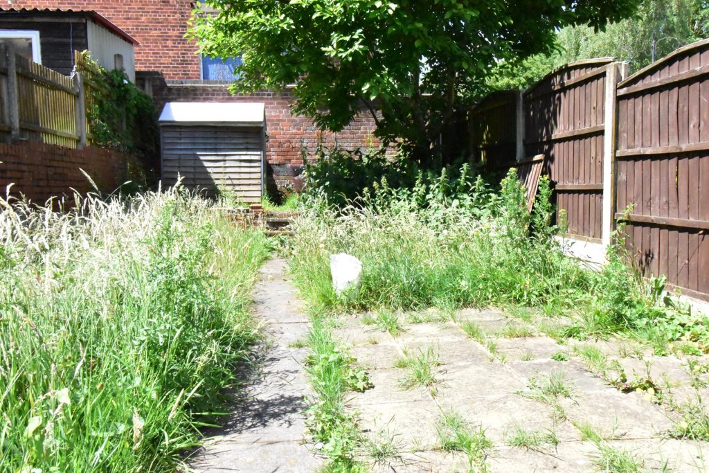 To the rear of the property there is an overgrown garden with a lawn area, patio and pathway to the front.
