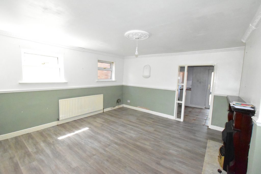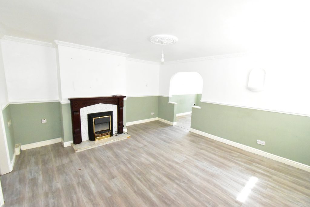 With two windows to the side, feature fireplace, radiator, power and ceiling light points.