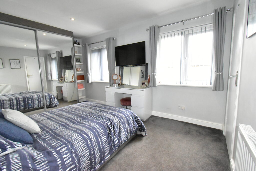 With two UPVC double glazed windows to the front, fitted wardrobe, built in single wardrobe, radiator, power and ceiling spotlights.
