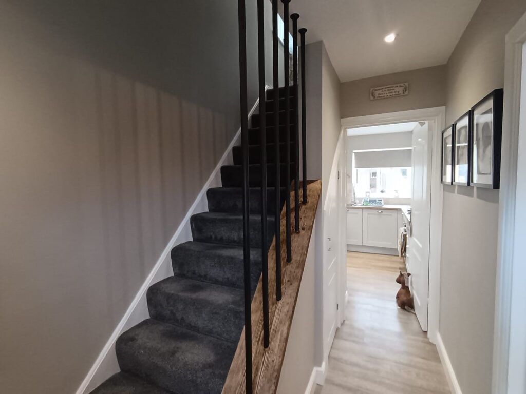 With stairs to the first floor landing, access to the ground floor rooms, power and ceiling light points.