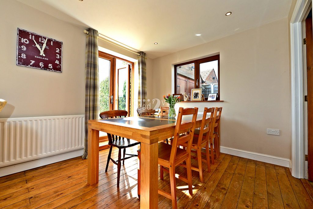The dining area has patio doors to the rear, double glazed window to the side, thermostatically controlled radiator, and ceiling spotlights.