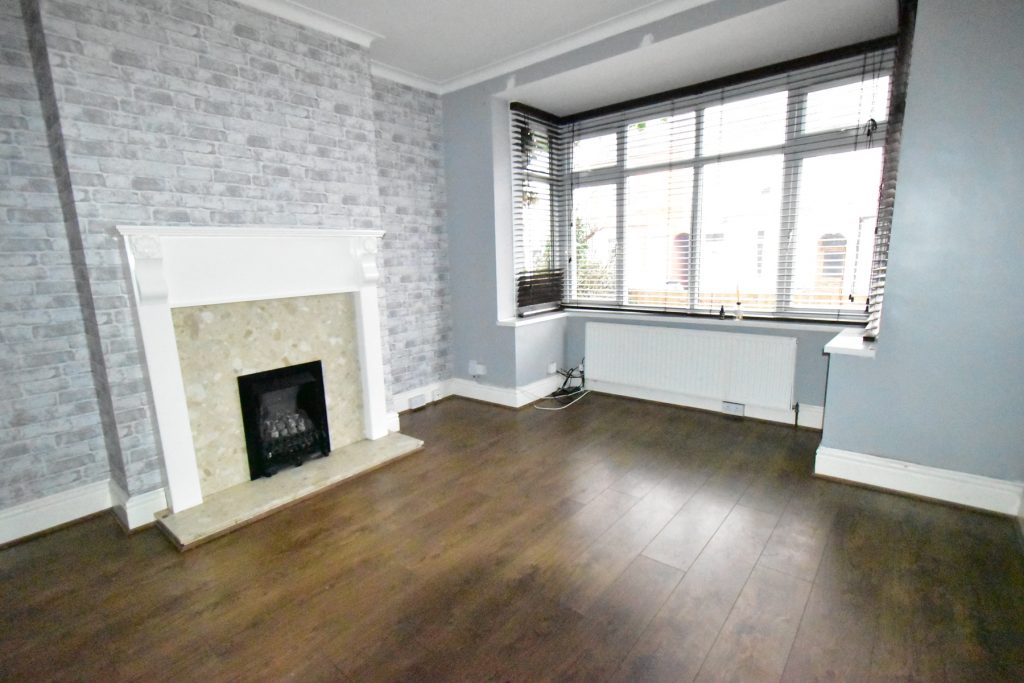 A spacious family room with UPVC double glazed window to the front, feature fire place, radiator, power and ceiling light points.