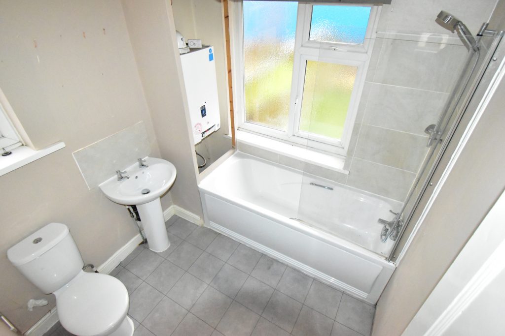 Double glazed opaque window to the rear, three piece suite comprising of a W.C., wash hand basin, bath with shower over, part tiled walls, radiator and ceiling light point.