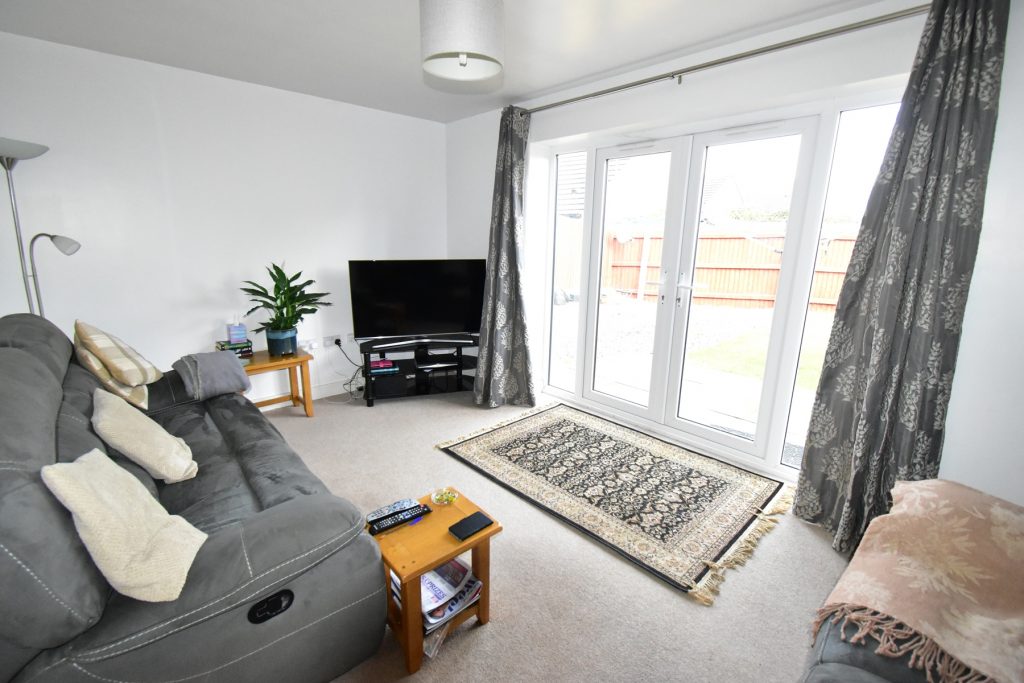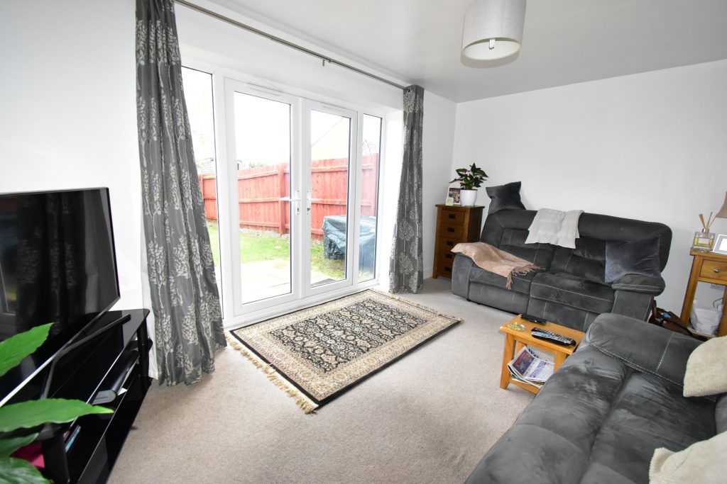 A welcoming living room with the benefit of patio doors opening onto the rear garden. There is a radiator, power points, TV aerial point and ceiling light point.