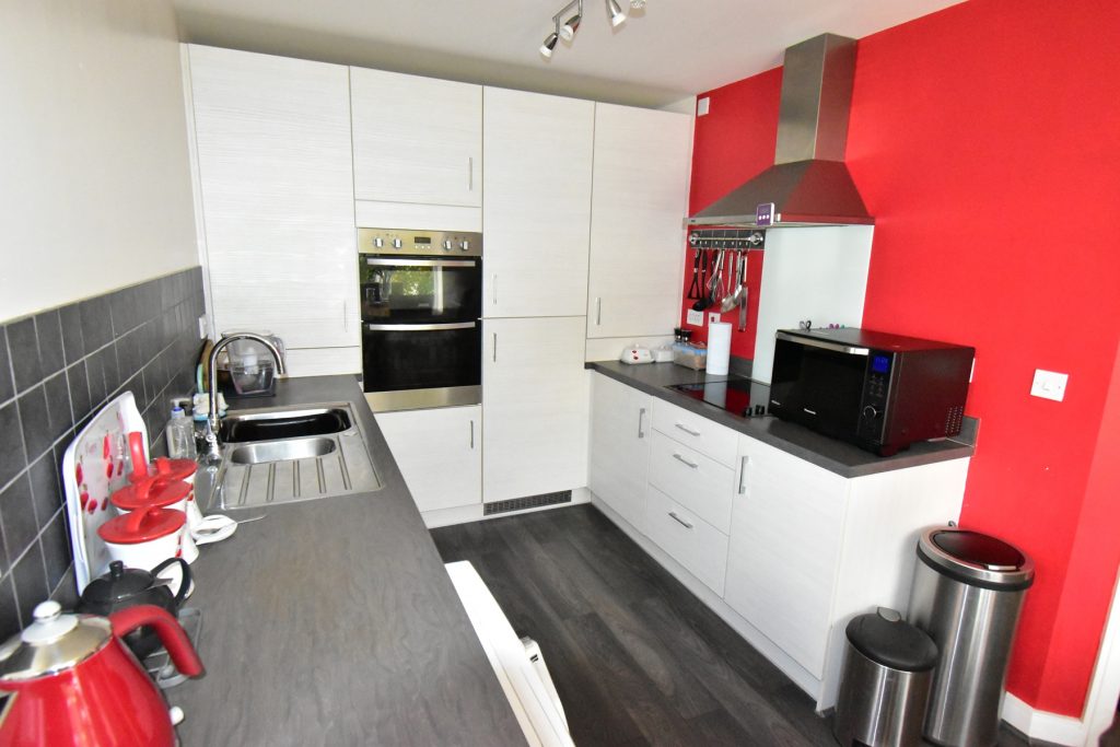 This is a superb dining kitchen with a range of modern wall and base units in a white gloss finish with regret slate effect work surfaces and coordinated tile surround. There are numerous built in appliances to include fridge freezer, dishwasher, washing machine, double oven and grill, four point electric hob with extractor over and one and a half bowel stainless steel sink with mixer tap and drainer. There is a ceiling light point, radiator, power points and UPVC double glazed windows to the front and side.