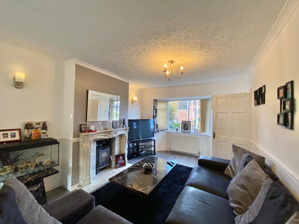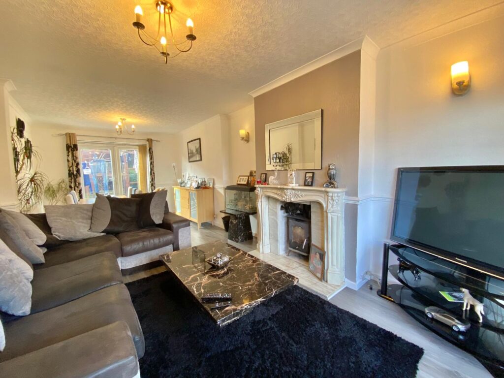 A spacious family room with double glazed window to the front, patio doors to the rear, radiator, power and ceiling light points.