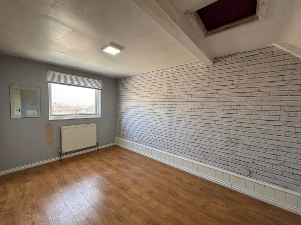 With UPVC double glazed window to the front, feature fireplace, radiator, power and ceiling light points.