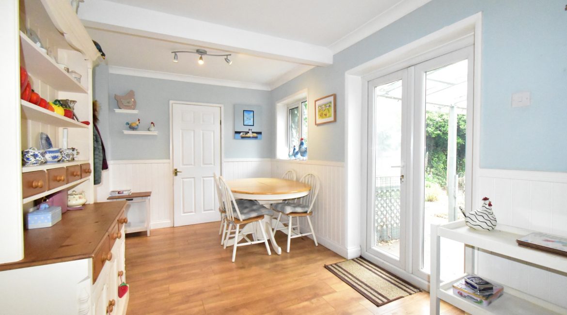 To the rear of the property is an easy to maintain garden with paved areas, a slightly raised and covered area outside the kitchen, side access to the garage, all enclosed with a good degree of privacy