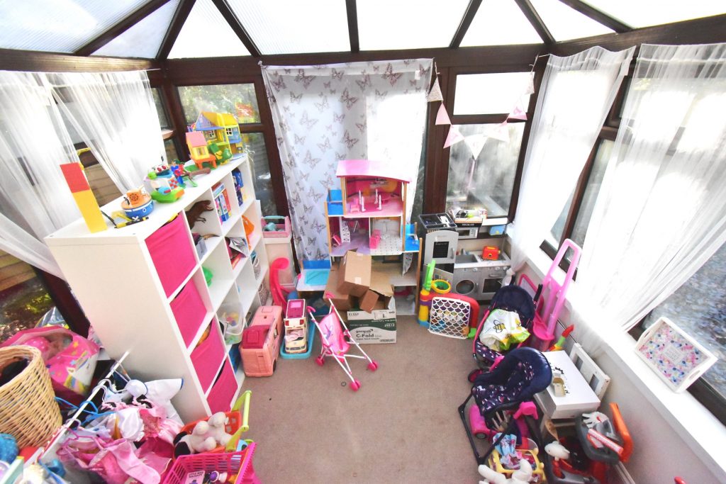 A large bright family room currently used as a playroom but could easily be a second living space.