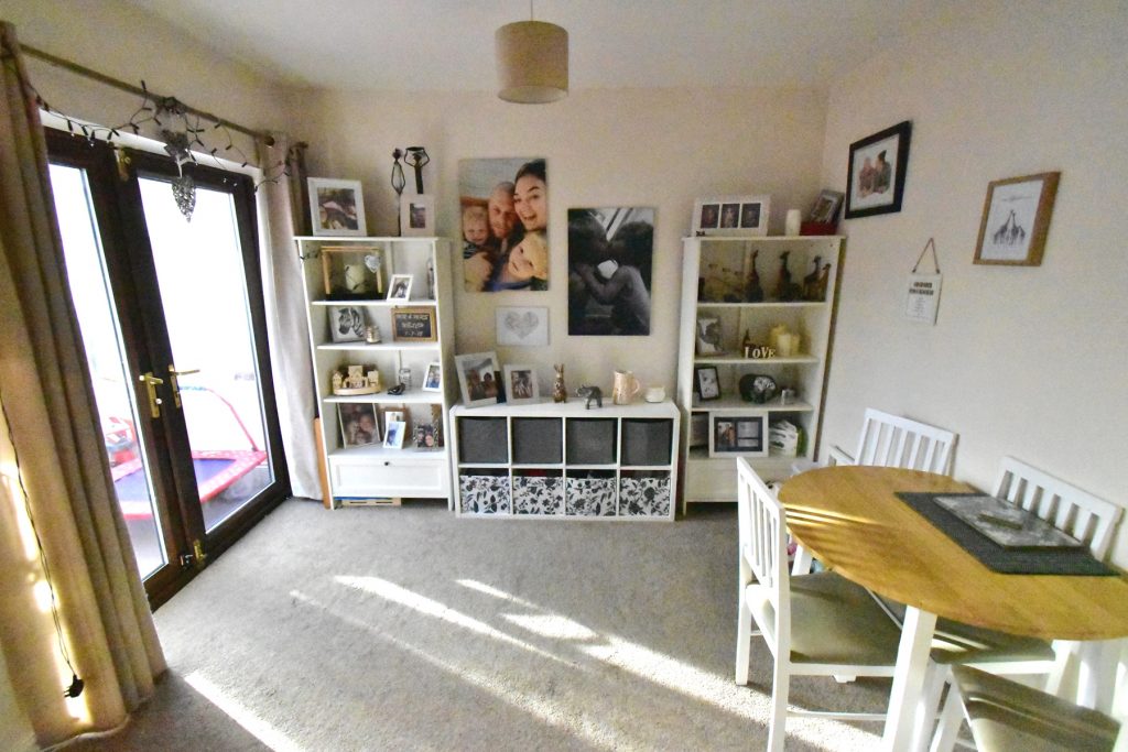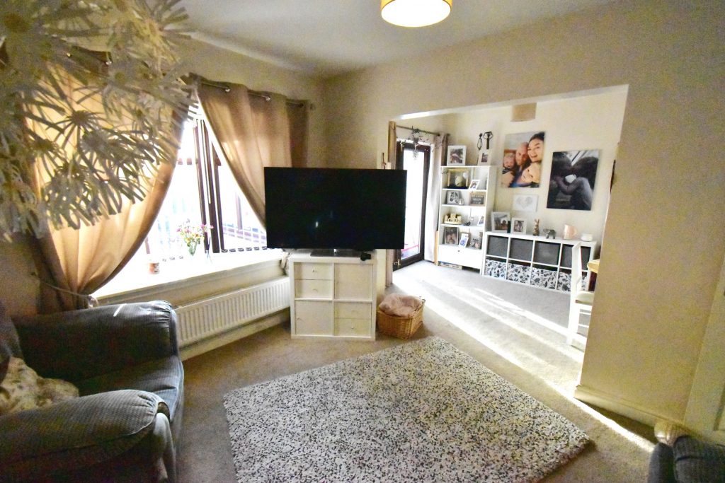 The living room has a large window to the rear, radiator, power and ceiling light points. The living room goes straight through to the dining room which also has a radiator, power and ceiling light points and double doors through to the conservatory.