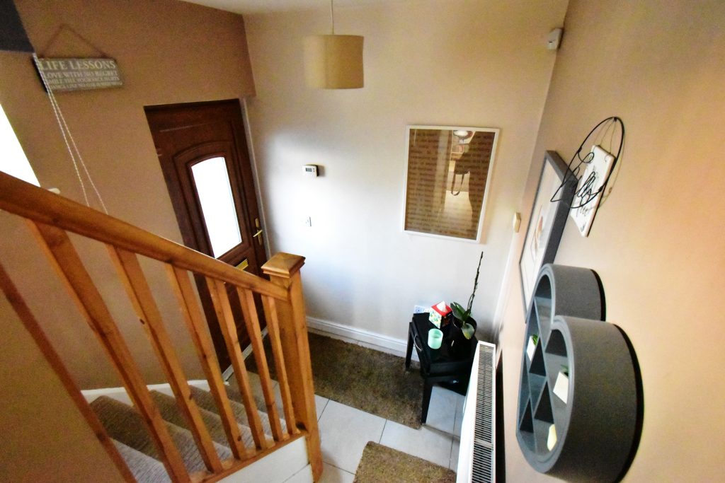 With stairs to first floor landing, radiator, power and ceiling light points.