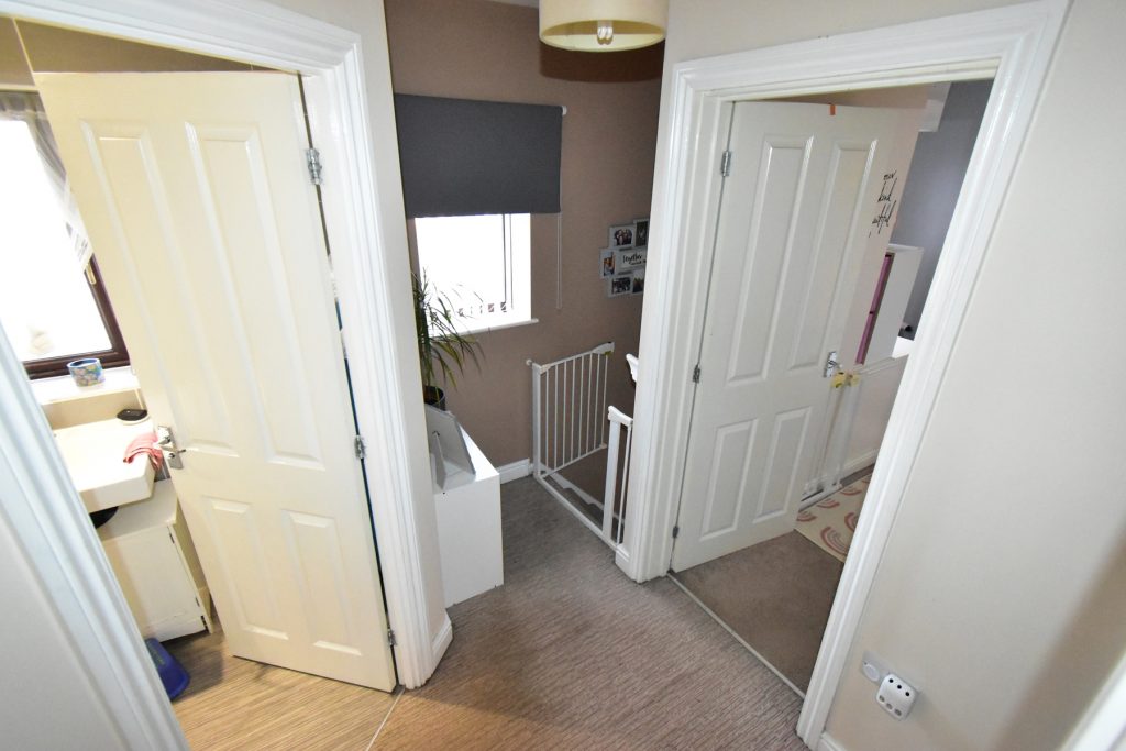 The first floor landing leads to the family bathroom and three bedrooms, it has power and ceiling light points.