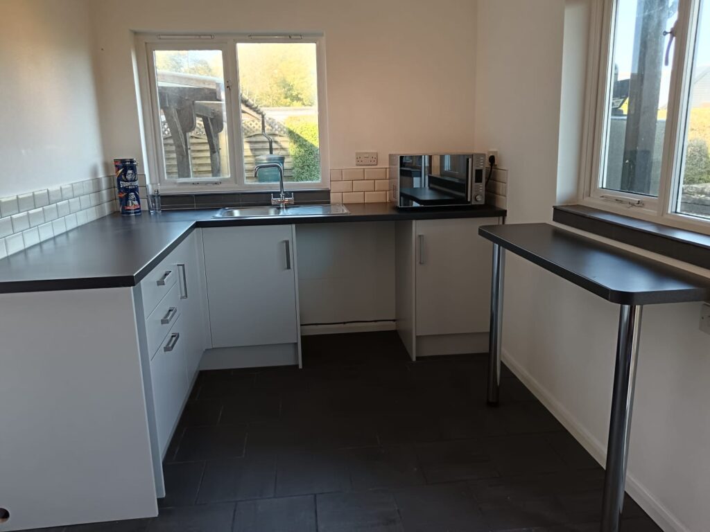 With UPVC double glazed windows to the rear, door to the rear, kitchen area with cupboard space and a single drainer sink with mixer tap, power and ceiling light points.