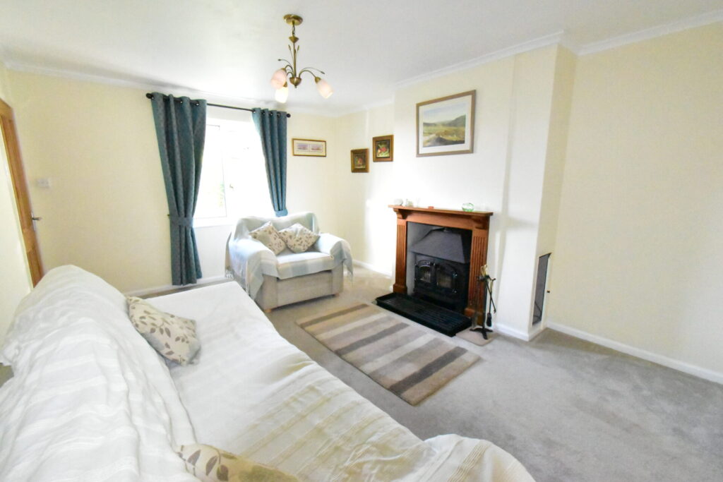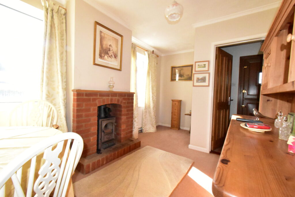 With UPVC double glazed window to the front, feature fireplace, access to the dining room, radiator, power and ceiling light points.
