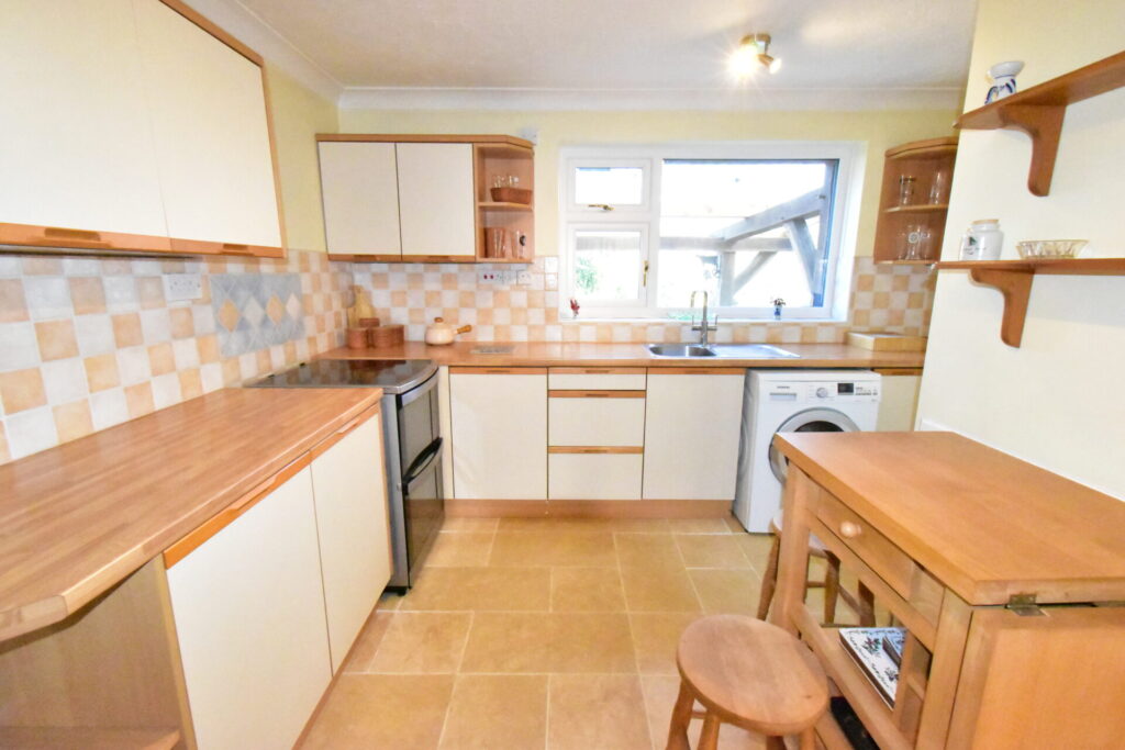 Fitted with a range of wall and base units in a white/cream and wood effect finish with coordinating roll top work surfaces, part wall tiling, space and plumbing for a washing machine, space and plumbing for a fridge freezer, space and fittings for an oven, single drainer sink with mixer tap, access to the dining room, snug and ground floor W.C., UPVC double glazed window to the rear, door to the side, radiator, power and ceiling light points.