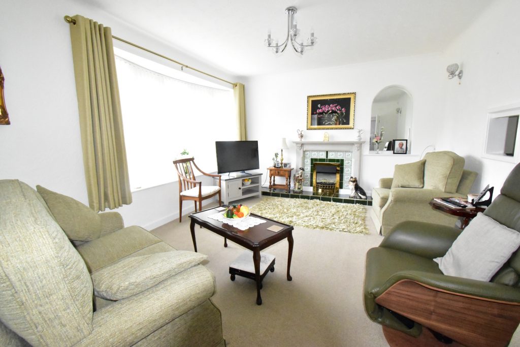 A spacious family room with double glazed window to the front, feature fireplace, radiator, power and ceiling light points.