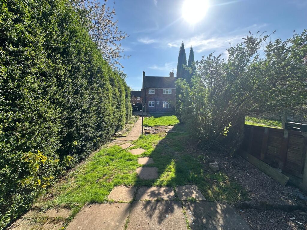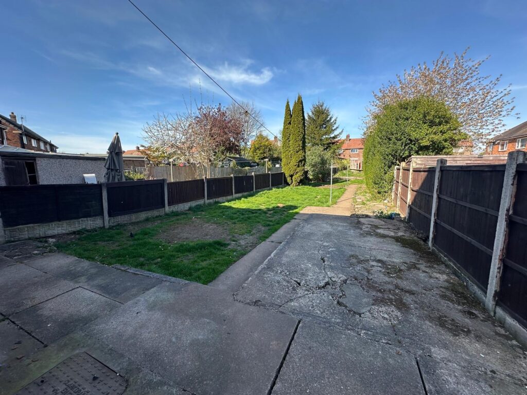 To the rear of the property there is a large garden with a path and lawn, all enclosed with fences.