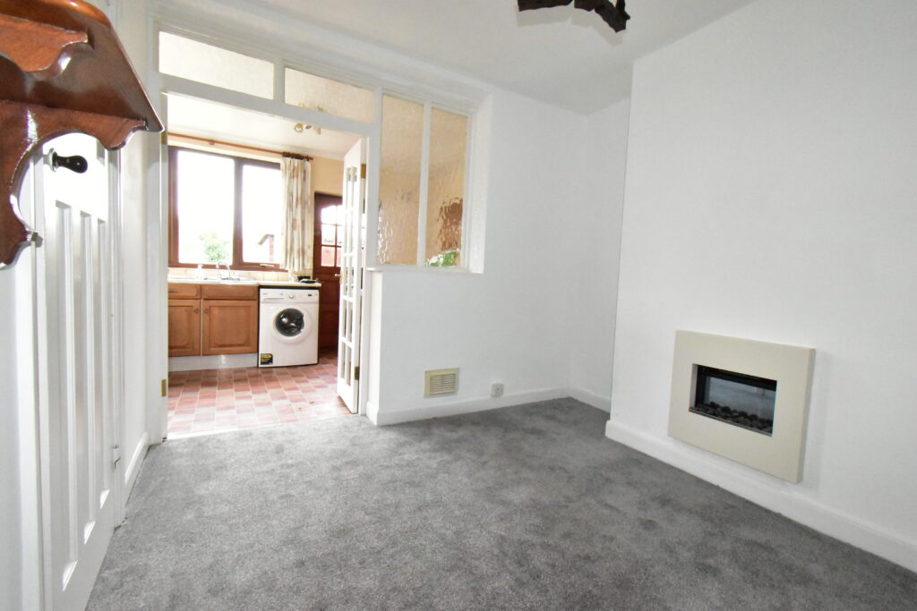With French doors into the kitchen, door into pantry, under stairs storage, electric fireplace, radiator, power and ceiling light points.