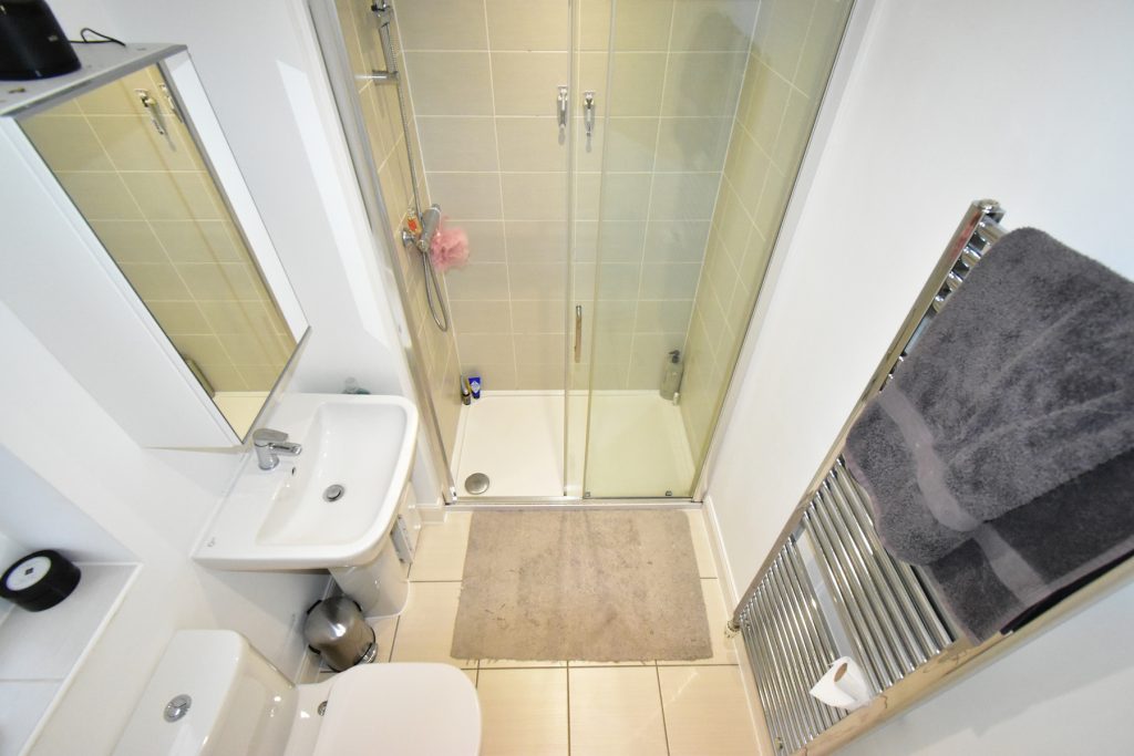With UPVC double glazed window to the side, W.C, wash hand basin, shower cubicle, chrome towel radiator and ceiling light point.