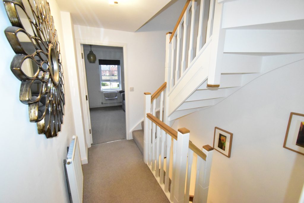 With stairs to the first floor landing, access to the living/kitchen/dining room, downstairs W.C. and the study, radiator, power and ceiling light point.