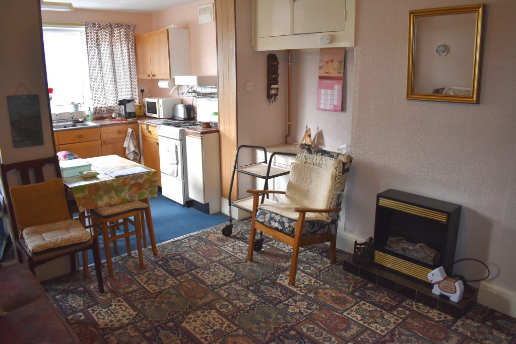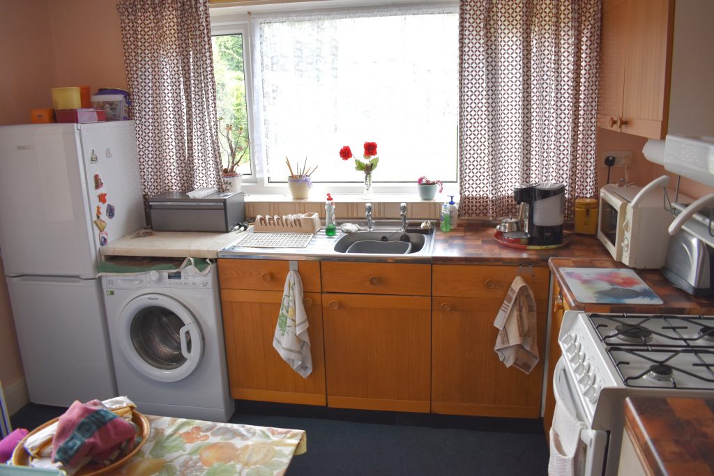 Archway through to extension with kitchen having UPVC double glazed window overlooking the rear garden. There are a small number of wall and base units, space for fridge freezer, space and plumbing for washing machine and space for a cooker.