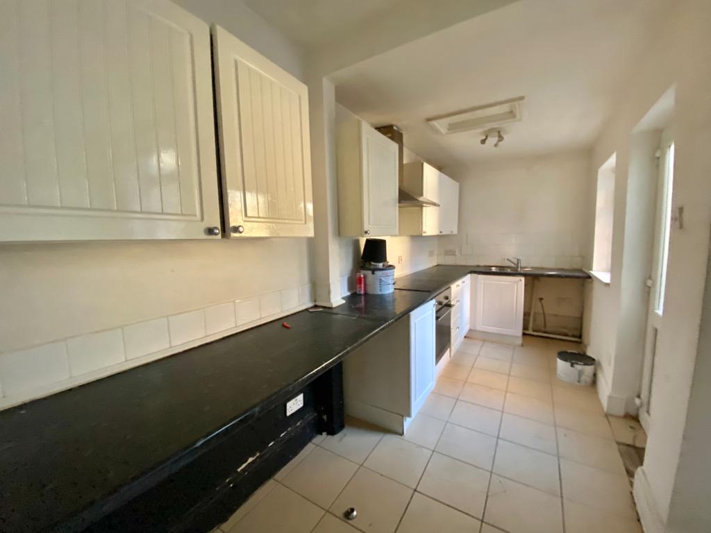 Fitted with a range of wall and base units in w white finish with coordinating work surfaces, part wall tiling, space and plumbing for a fridge freezer, space and plumbing for a washing machine, electric oven, four ring electric hob, extractor fan over, single drainer sink with mixer tap, window to the side, door to the side, radiator, power and ceiling light point.