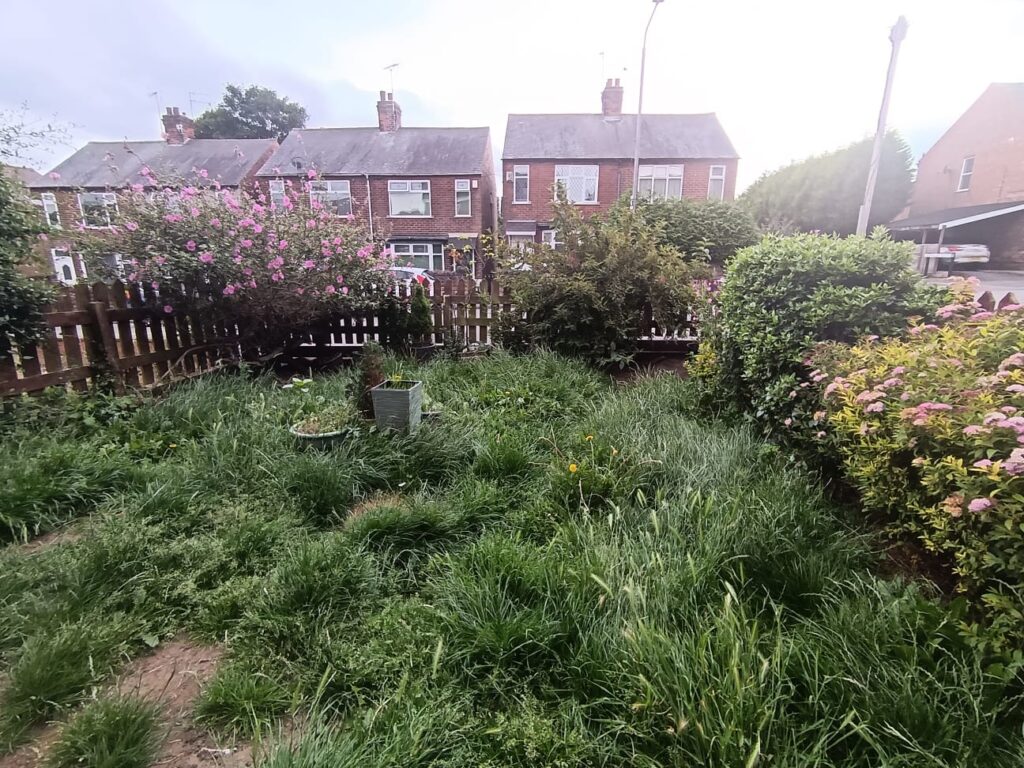 Access to a front facing garden which is laid to lawn.