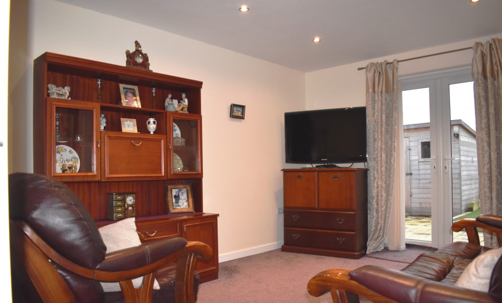 With UPVC double glazed patio doors opening onto the rear, radiator, ceiling spot lights and numerous power points.