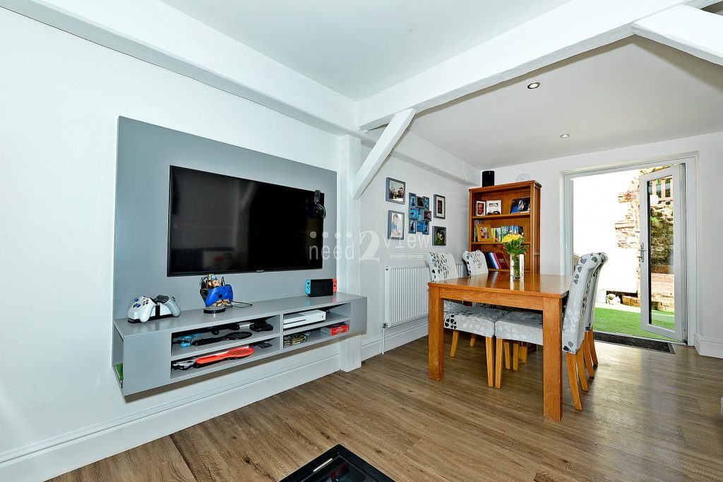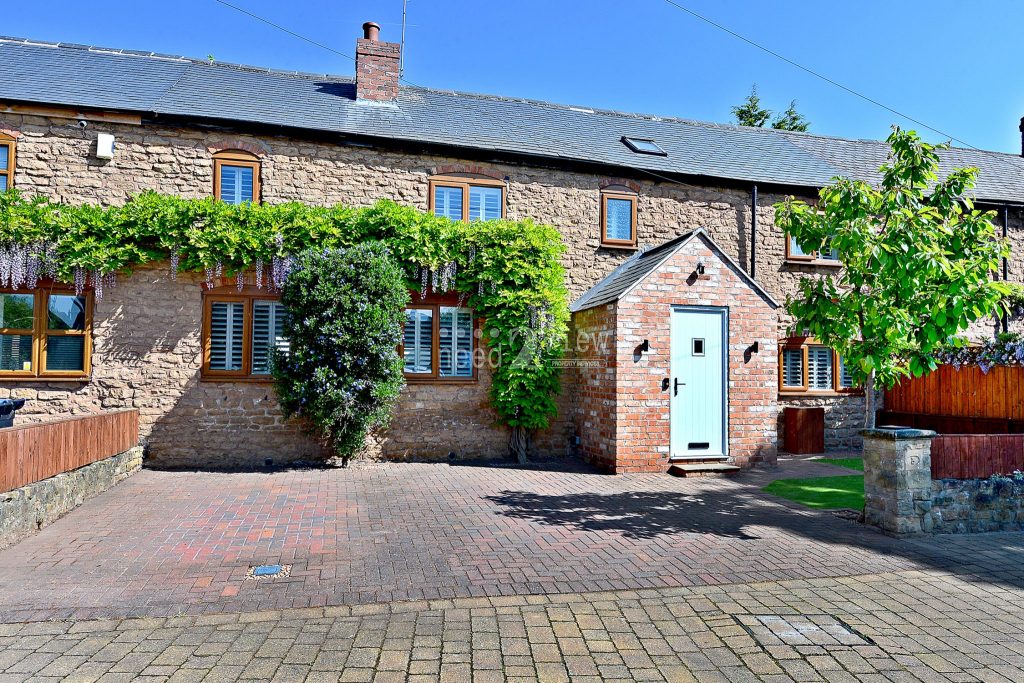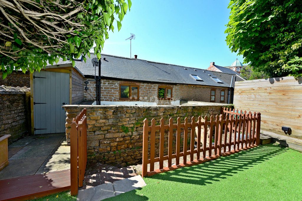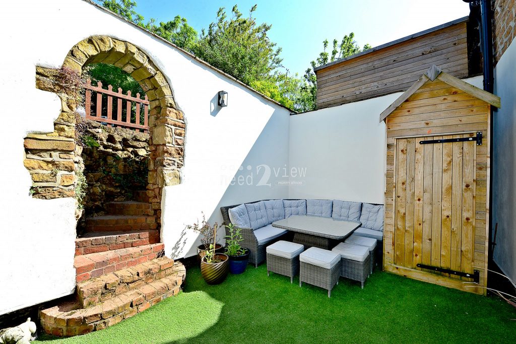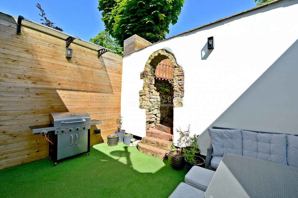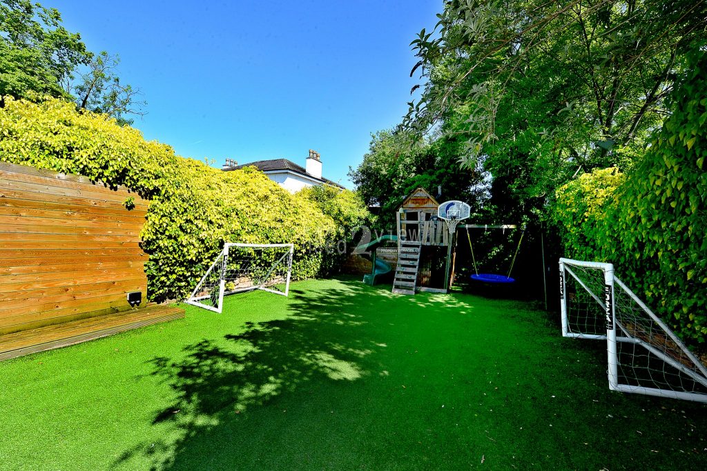To the rear of the property there is a well maintained garden with a small patio right outside the doors, a brick paved path leading to another patio at the bottom of the garden, bricked plant boarders, a raised brick pond and a large grass area.