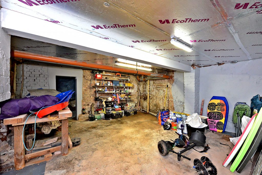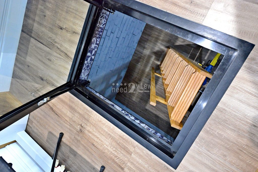 Double glazed window with internal shutters, French doors to courtyard, glazed trap door access to large cellar, radiator, power and ceiling light point.