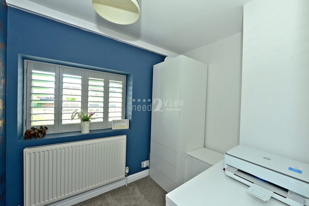 Double glazed window to the front with internal shutters, radiator, power and ceiling light point.
