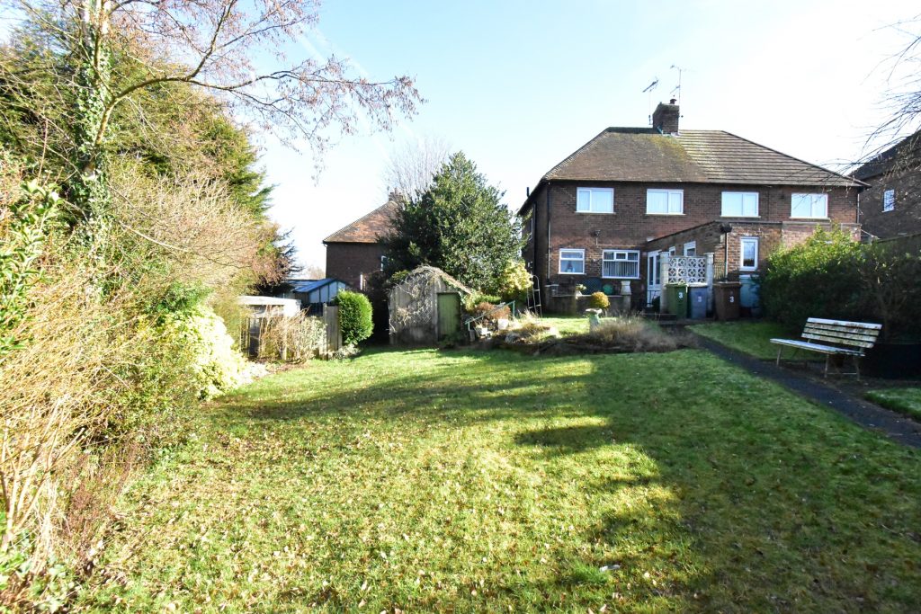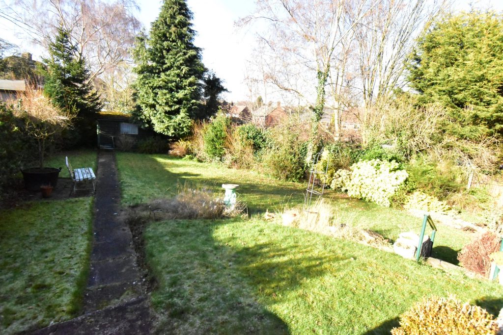 To the rear of the property there is a large laid to lawn garden with a patio directly outside the house and a pathway leading to the far end where there is a shed.