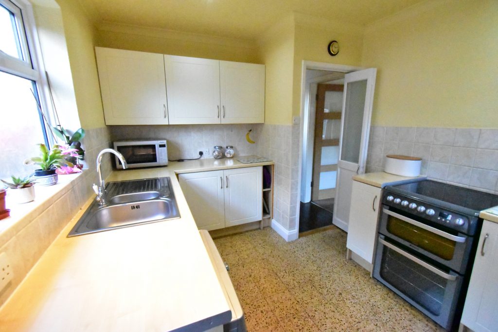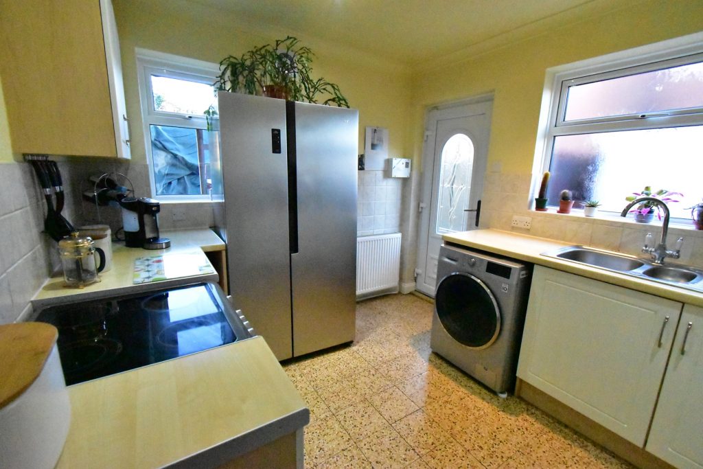 The kitchen has a range of wall and base units in a white finish with roll top work surfaces and coordinated wall tiling. There is space for a cooker, space for a fridge freezer and space and plumbing for a washing machine. One and a half bowl sink with mixer taps, Double glazed windows to the side and rear, UPVC double glazed door opening onto the driveway. Power point and ceiling spotlights.