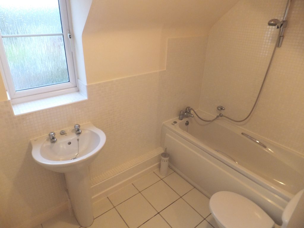 With ceiling light point, extractor, UPVC double glazed opaque window, three-piece white suite comprising; panelled bath, close coupled W.C, pedestal hand wash basin all with chrome fittings, twin voltage shaver point, heating towel rail radiator, ceramic floor tiling, ceramic wall tiling and shower over bath.
