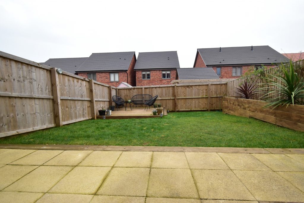 A good sized fully enclosed garden to the rear with patio area directly to the back of the house, laid lawn and decking in one corner.