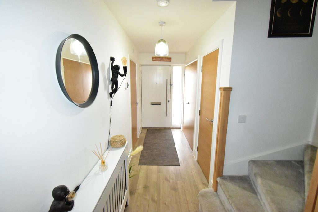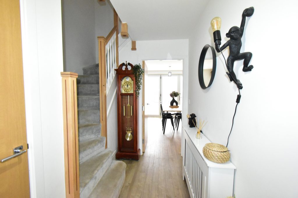 With access to the downstairs W.C., dining kitchen, two storage cupboards and the stairs to the first floor landing. With radiator and ceiling light point.