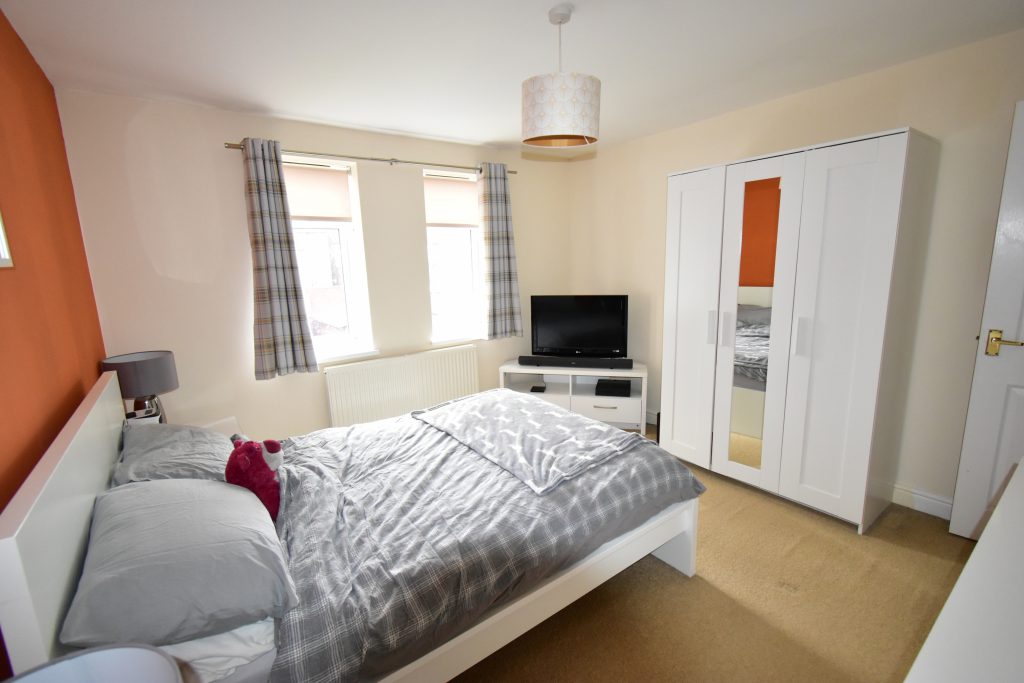 Double bedroom with UPVC double glazed windows to the rear, thermostatically controlled radiator, power points, and ceiling light point.