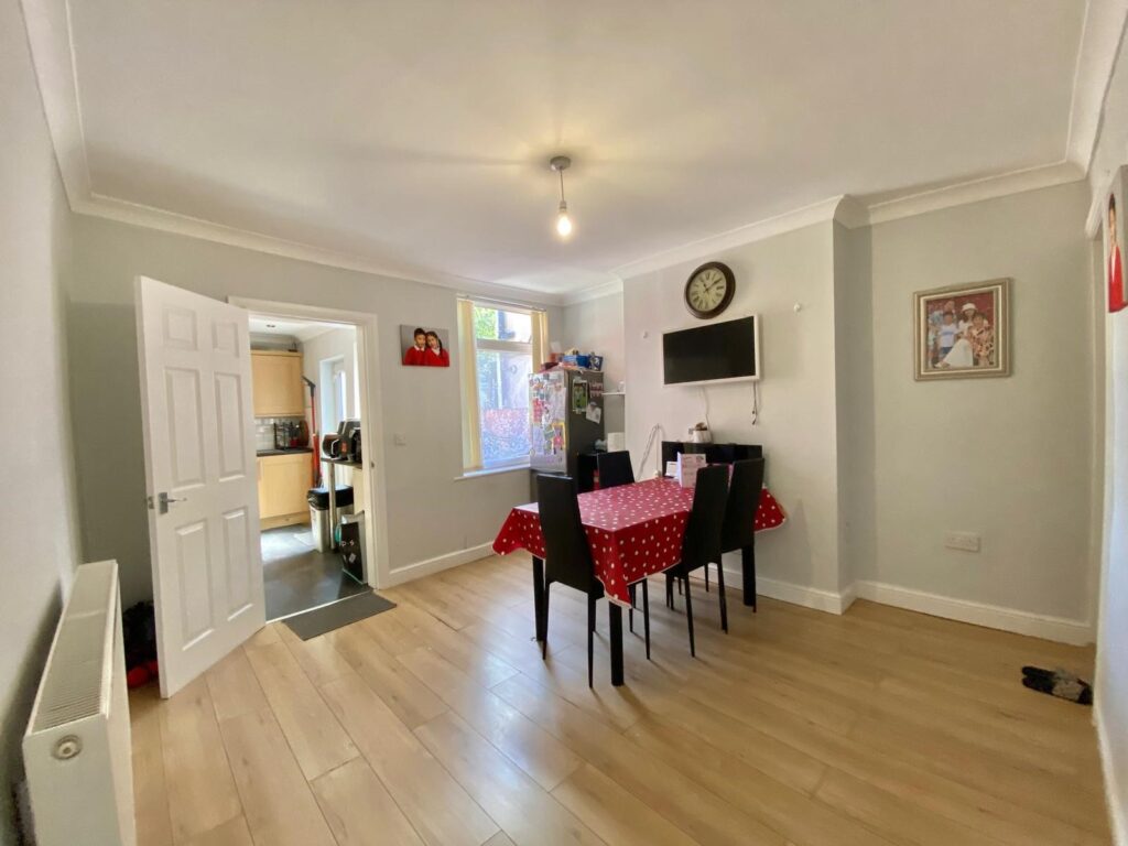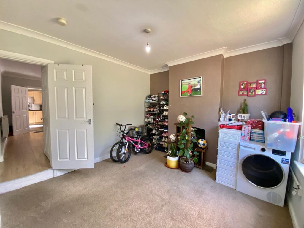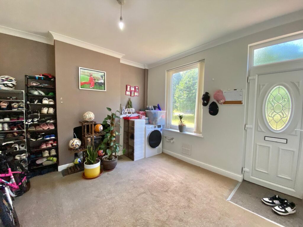 With access to stairs to the first floor landing, access to the kitchen, UPVC double glazed window to the rear, radiator, power and ceiling light points.