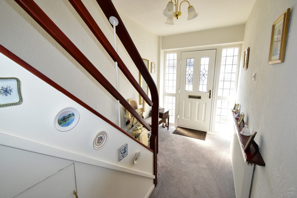 With stairs to the first floor landing, access to the living room and dining kitchen, radiator, power and ceiling light points.