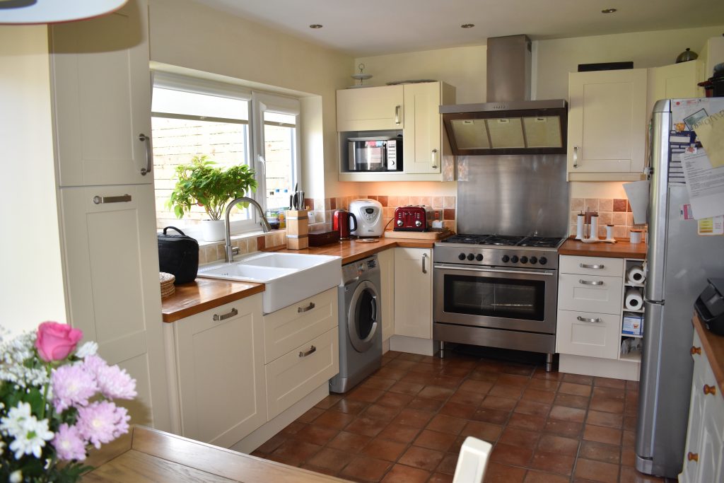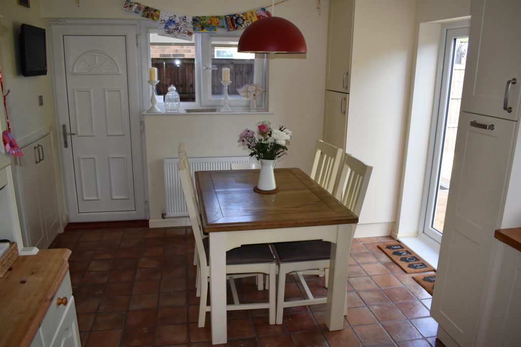 Superb feature of the property and will not fail to impress. There are UPVC double glazed windows to the rear and side with Tilt & Turn openers and integrated window blinds, UPVC double glazed door to the side and UPVC double glazed French doors overlooking and opening onto the rear garden, stainless steel range style cooker with five gas rings, large oven and grill with illuminated extractor over, a range of wall and base units with underlighting, larder units, corner carousel, butchers block style work surfaces, coordinated wall tiling, ceramic floor tiling, space for fridge freezer, space and plumbing for washing machine, double Belfast style sink with mixer taps, thermostatically controlled radiator, power points and ceiling spot lights.
