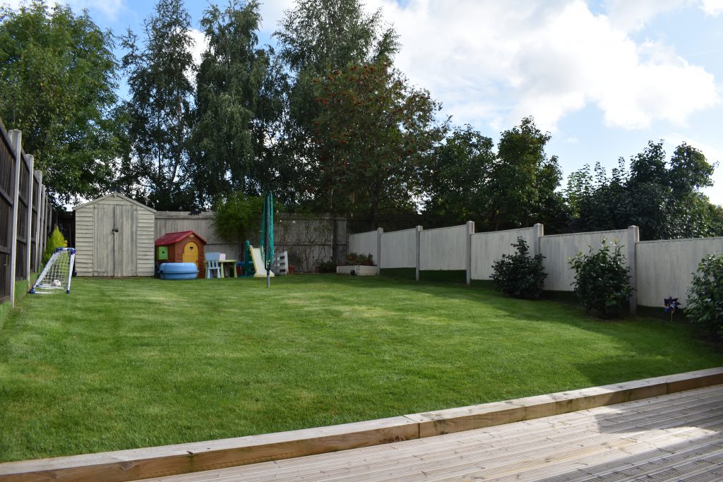 There is gated access to a screened bin store, full width wrap around decked dining and seating area. The remainder of the large garden is laid to lawn and is fully enclosed with fencing and as a good degree of privacy as it is not overlooked from the rear.