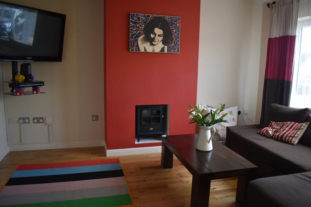 Superb lounge with continuation of the oak flooring, UPVC double glazed window to the front with Tilt & Turn openers, thermostatically controlled radiator, numerous power points, telephone point, TV aerial point, ceiling light points and feature fireplace. The view to the front window is attractive as it overlooks public open space.
