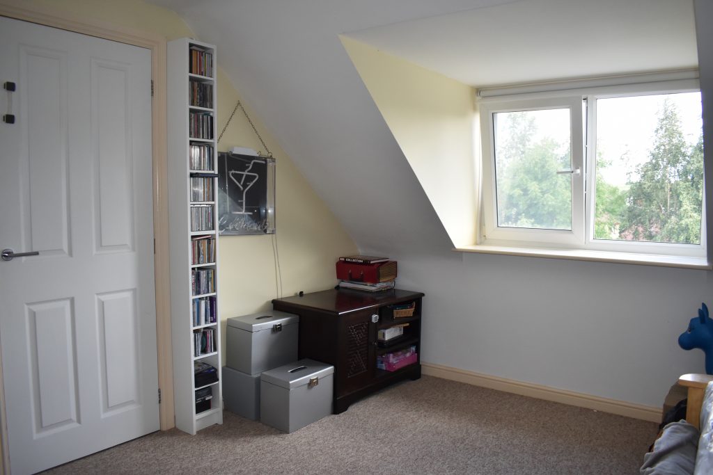 With thermostatically controlled radiator, UPVC double glazed window to the side with Tilt & Turn opener, ceiling light point and stairs to attic room.