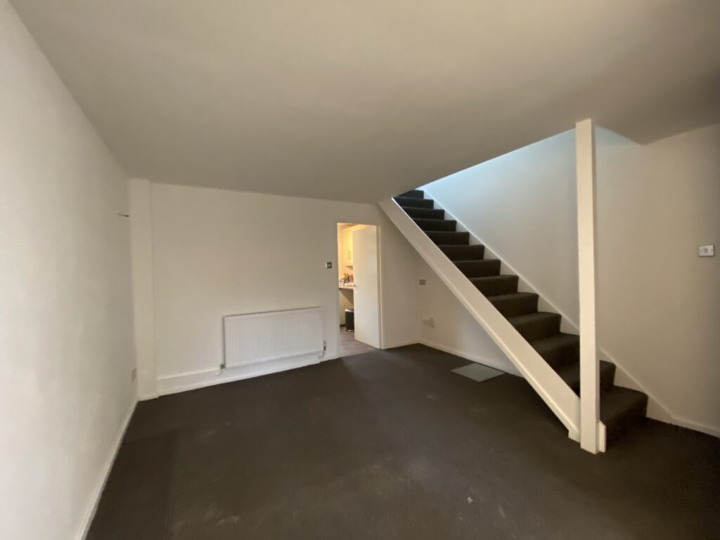 A spacious family room with stairs to the first floor landing, access to the kitchen and dining room, radiator, power and ceiling light points.