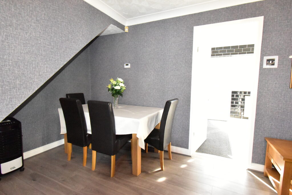 A spacious family room with UPVC double glazed window to the front, feature fireplace, access to the kitchen, radiator, power and ceiling light points.