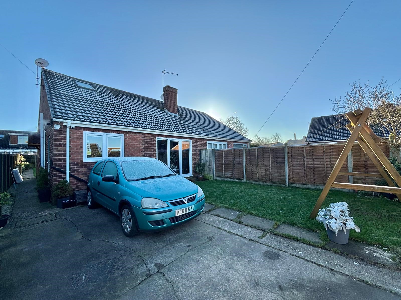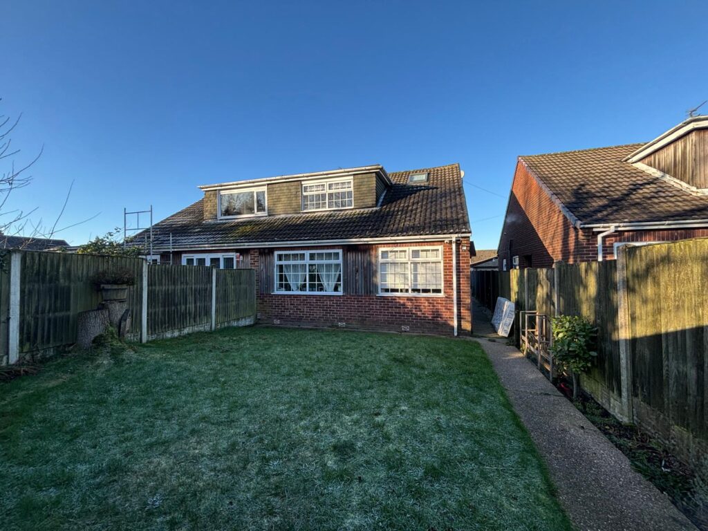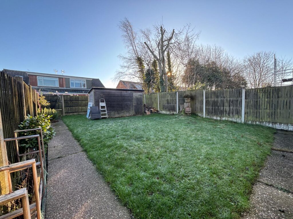 To the rear of the property is laid to lawn, with shrub boarder and all enclosed with fences.