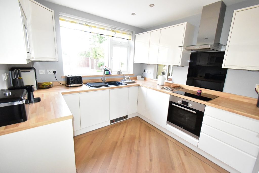 A good sized, modern, family kitchen with white units and wooden worktops. UPVC double glazed window to the rear. Ceiling spotlights, extractor fan, integrated oven, space and plumbing for fridge freezer, space and plumbing for washing machine. Multiple power points.