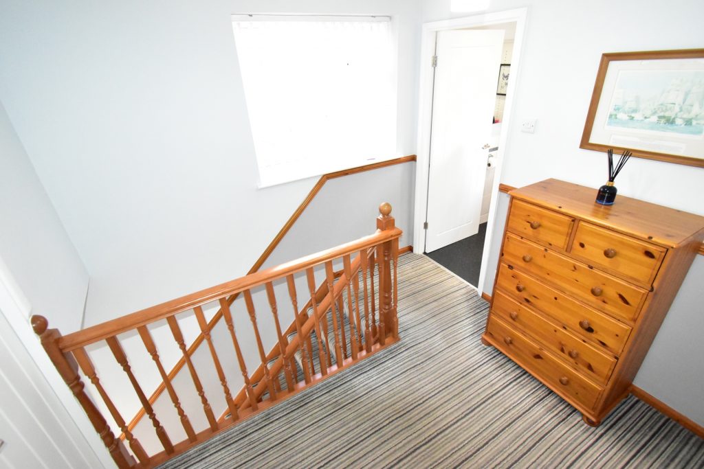 The first floor landing has a UPVC double glazed window to the side which provides ample light. There is a built in airing cupboard which houses the Alfi combi boiler. A thermostatically controlled radiator, power points and access to insulated roof space.