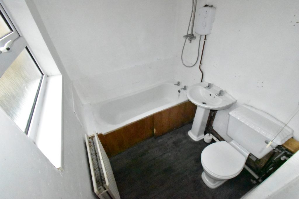 With three-piece white suite comprising of a panelled bath with chrome fittings and co-ordinated tiling, pedestal wash hand basin, WC, radiator and UPVC double glazed window.